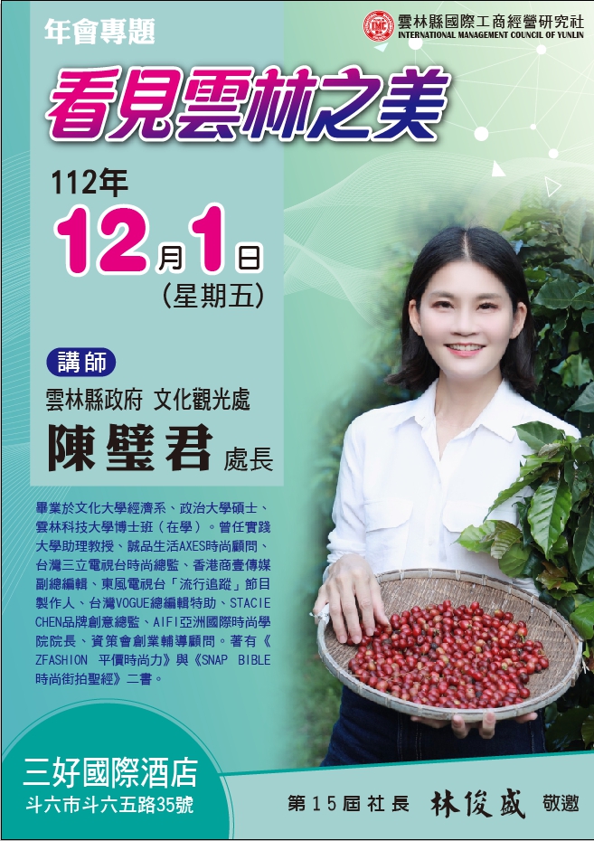 20231201 年會講師:陳璧君 主題:看見雲林之美秘書2025-06-29T22:08:22+08:003 11 月, 2023|立即分享FacebookXRedditLinkedInWhatsAppTumblrPinterestVkEmail: