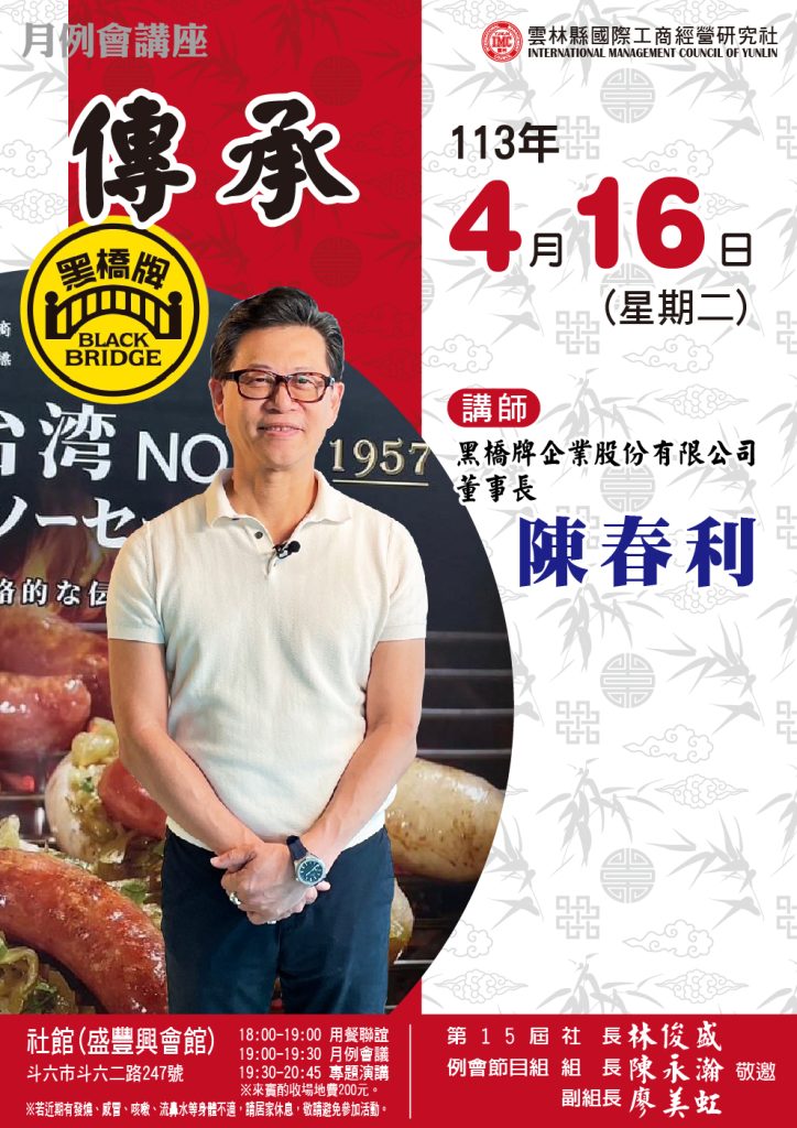 首頁 » 20240416 例會講師:陳春利 主題:傳承