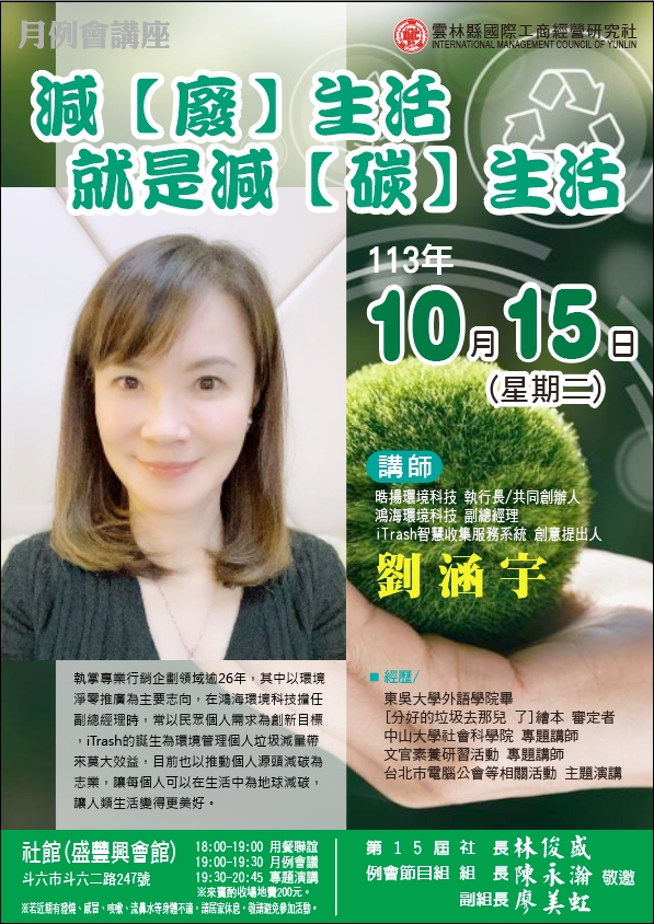 20241015 例會講師:劉涵宇 主題:減【廢】生活就是減【碳】生活