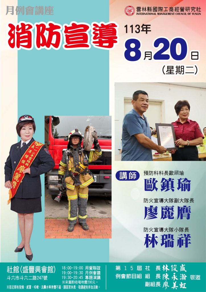 20240820 月例會暨社員大會,例會講師:歐鎮瑜、廖麗膺、林瑞祥 主題:消防宣導