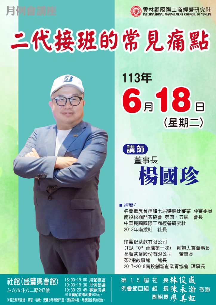 20240618 例會講師:楊國珍 主題:二代接班的常見痛點