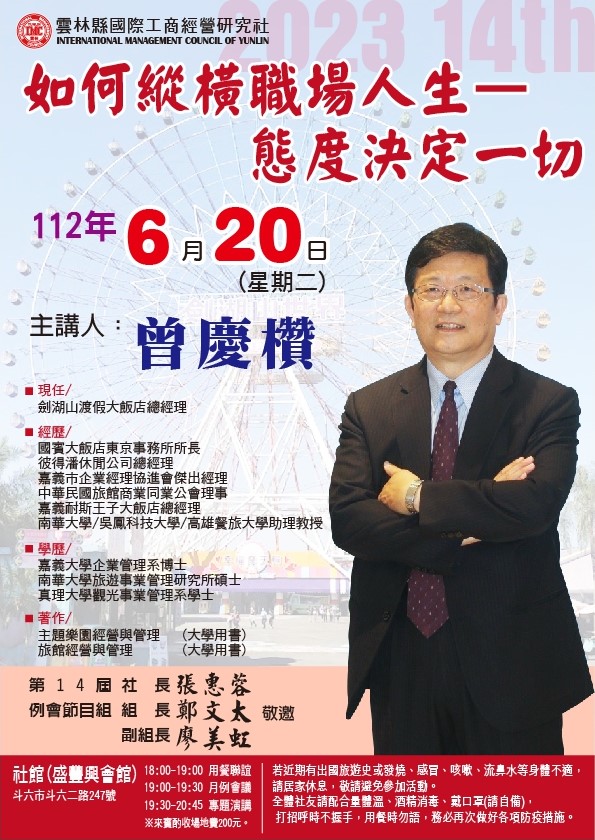 20230620 例會講師:曾慶欑 主題:如何縱橫職場人生-態度決定一切
